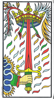 Según el Tarot de Marsella reconstituido en 1998 por Alejandro Jodorowsky y Philippe Camoin